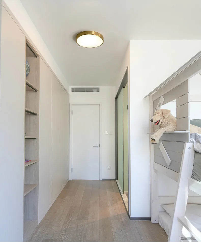 The Aurelia Luxe Brass LED Flush Mount Ceiling Light combines minimalist elegance with modern performance. Crafted with a sleek brass-finished frame and a smooth white acrylic diffuser, it delivers soft, uniform illumination suitable for bedrooms, hallways, living rooms, and luxury interiors. Its integrated LED technology provides efficient, long-lasting lighting in multiple color temperatures, ensuring the perfect ambiance for any space. A premium choice for contemporary homes and upscale commercial settings.