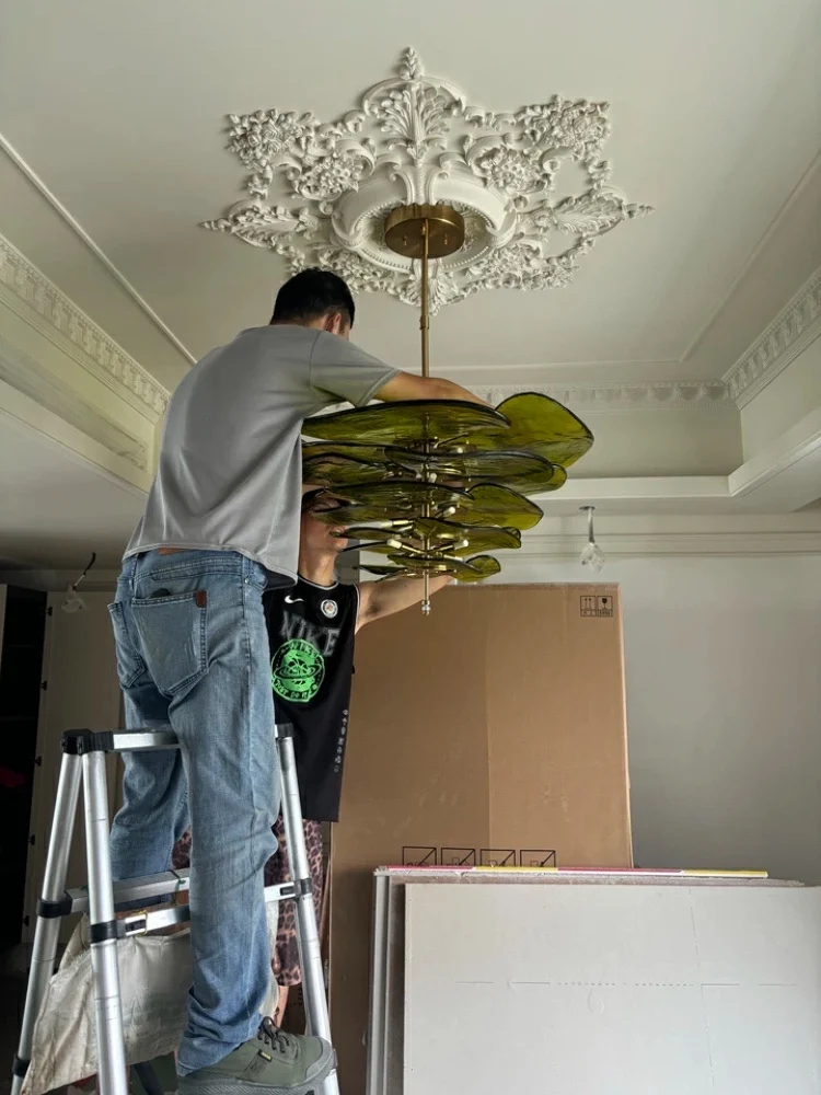 This lamp perfectly matches the ceiling design of my renovation. After installation, when I turned it on, it looked very bright, and all family members are also very pleased with it. Despite the fact that the product is quite heavy, installing it was quite simple. It's also great that the stand height can be individually adjusted!